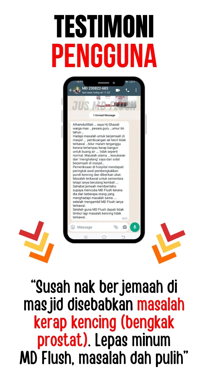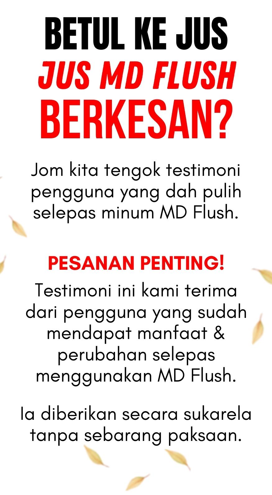 PERINGATAN! Anda dinasihatkan membeli jus MD Flush hanya di platform Facebook dan website sahaja.