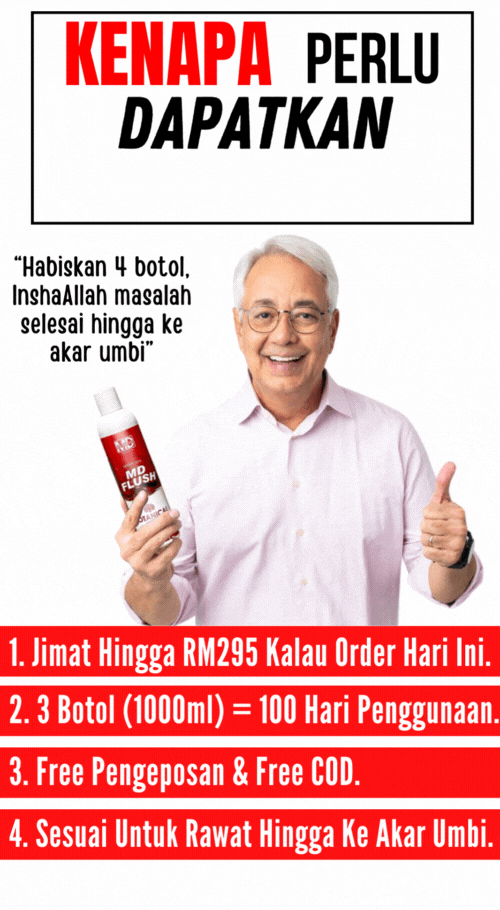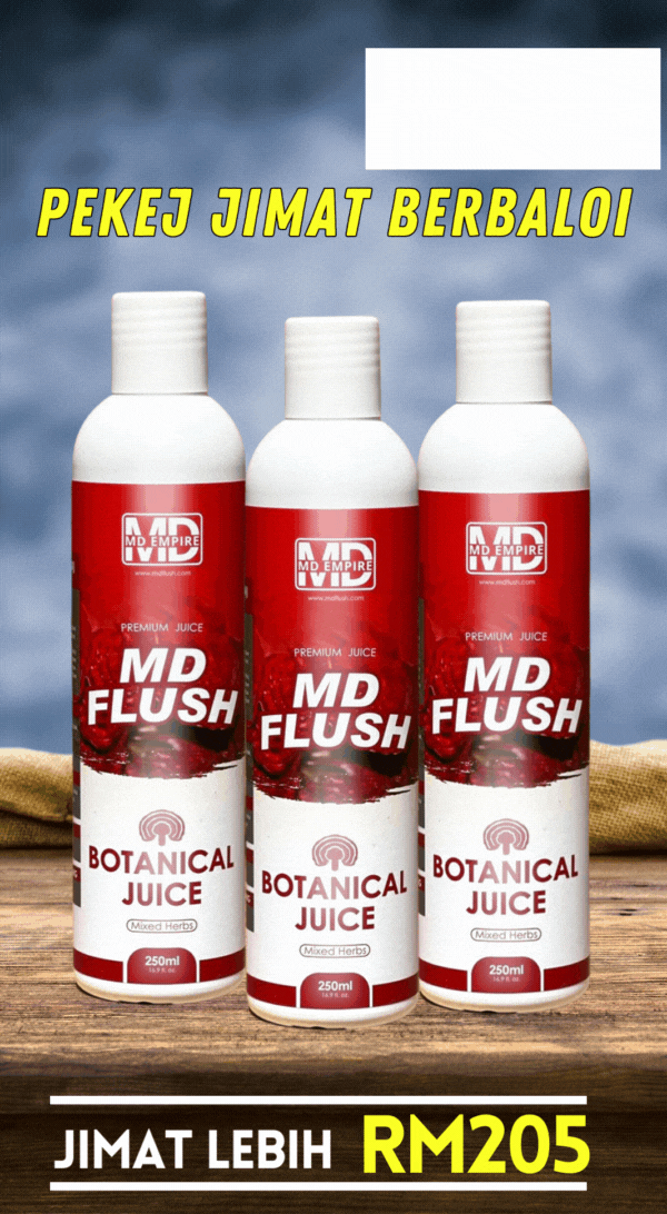 Penasihat Kesihatan MD menyarankan untuk anda mengamalkan sekurang-kurangnya 3 botol jus MD Flush supaya masalah anda anda dapat diselesaikan dengan cepat hingga ke akar umbi.