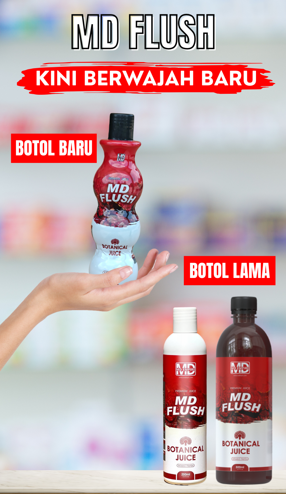 KENAPA KAMI MENUKAR MD FLUSH KEPADA BOTOL YANG BARU?
